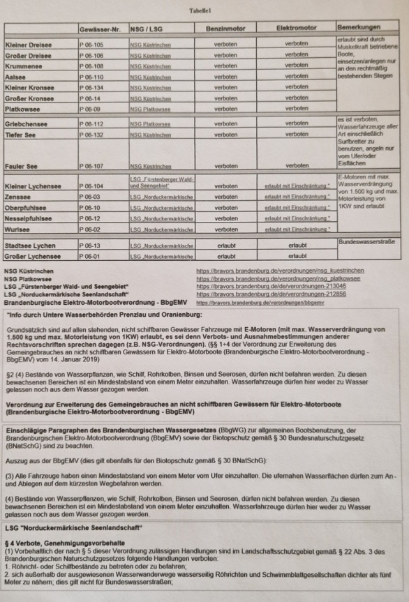 Wie ihr sicherlich alle wisst liegen viele Gewässer in der Uckermark und im Breich des KAV-Templin in Naturschutzgebieten. Diese haben unterschiedlichste Verordnungen die nicht immer zur Freunde der Anglerschaft sind. In der nachfolgenden Liste sieht man einige Gewässer mit entsprechenden Gewässern.